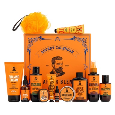 Адвент-календарь Barber Blend — первый украинский косметический адвент для мужчин. Это 12 средств ухода и аксессуаров в ярком, смелом формате бренда. В нём собрано всё необходимое для полноценного ритуала: уход за волосами, бородой, лицом, телом и полостью рта.