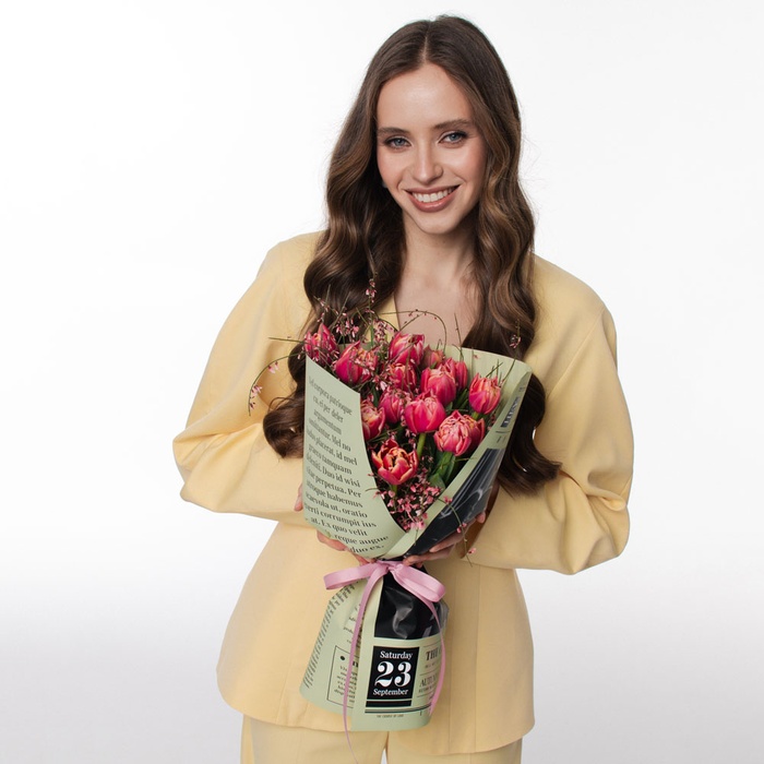 Букет «Истинная весна» от DonPion — это живой взрыв весеннего настроения, лёгкости и нежности, который идеально подходит для дорогих вам людей. В букете собраны розовые тюльпаны дабл — пышные, нежные и изысканные, — и солнечная джинестра, создающая воздушную, лёгкую композицию, напоминающую первые тёплые дни после зимы. Такой букет станет прекрасным подарком, чтобы выразить любовь, благодарность или просто порадовать без повода. «Истинная весна» станет идеальным подарком на День рождения, 8 Марта, годовщину или любой другой значимый момент. Букет «Истинная весна» — это символ весеннего обновления, качественной флористики и искренних эмоций.
