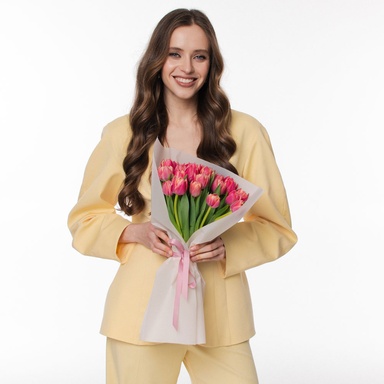 - Букет 25 рожевих тюльпанів дабл "Колумбус"