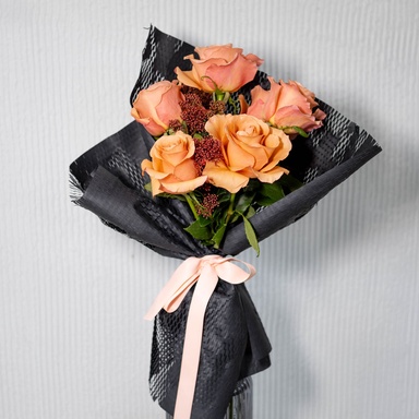 Букет 7 троянд “Моаб” — це витончена композиція, яка поєднує елегантніст і вишукану красу. Букет стане ідеальним подарунком для коханої людини, для святкування особливих дат або просто як знак уваги, що здатен викликати посмішку та радість.