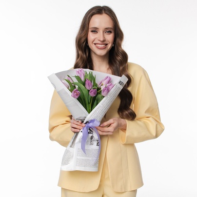 - Букет 15 ніжно-фіолетових тюльпанів