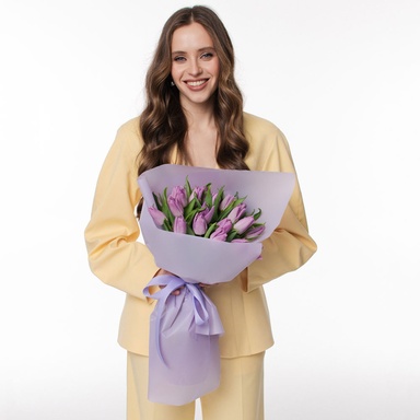Букет 21 ніжно-фіолетових тюльпанів стане чудовим вибором для Дня народження, річниці, свята чи будь-якого моменту, який хочеться зробити особливим.